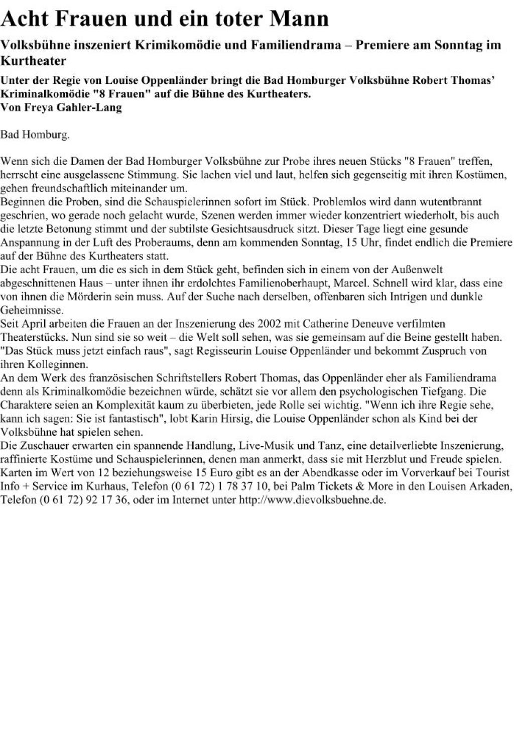 | Termine | 26.08.2012 - Kurtheater Bad Homburg 28.08.2012 - Kurtheater Bad Homburg 29.08.2012 - Kurtheater Bad Homburg |