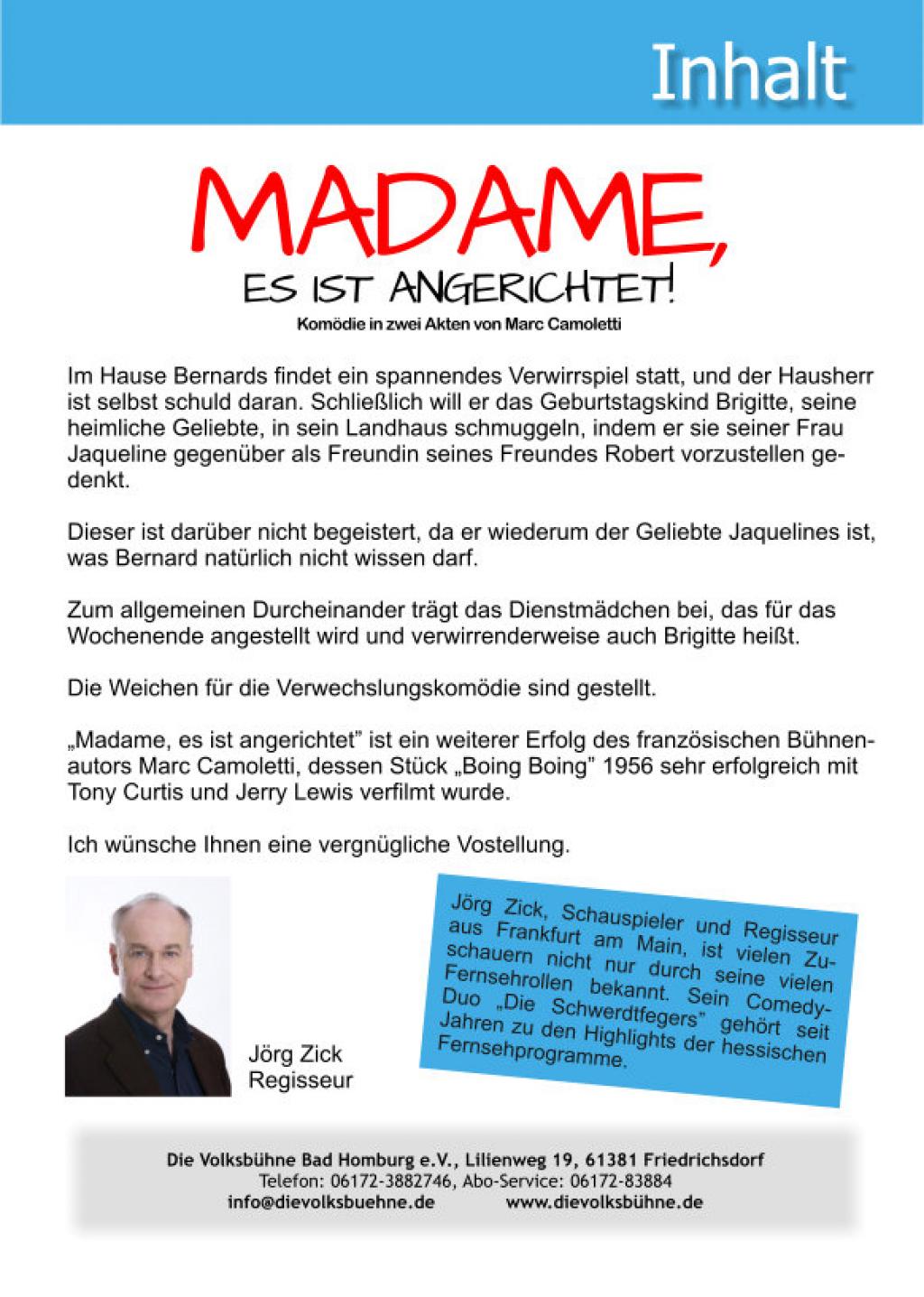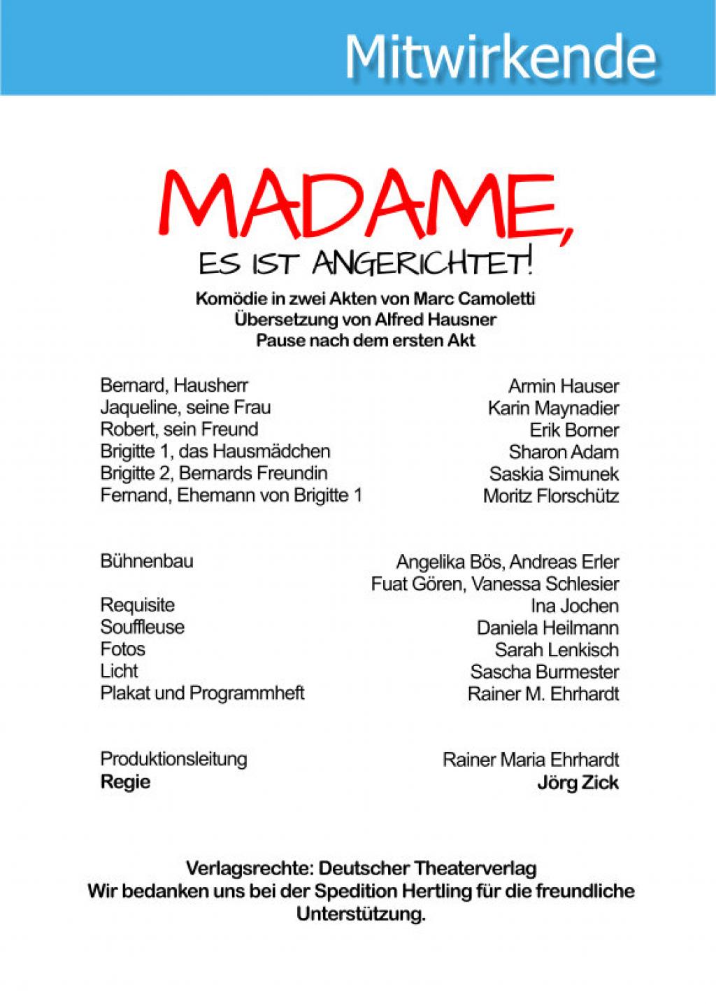 | Titel | Madame, es ist angerichtet |