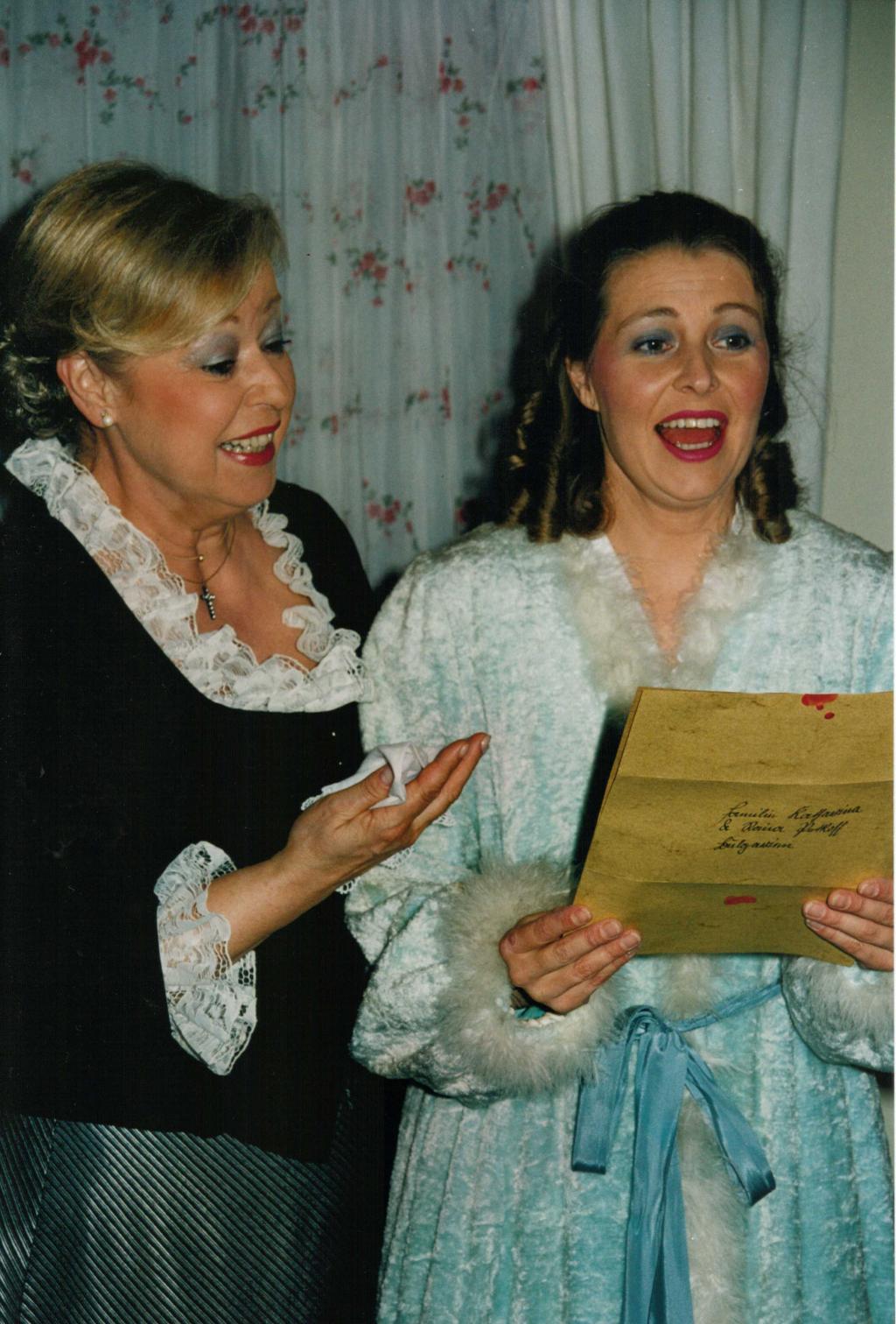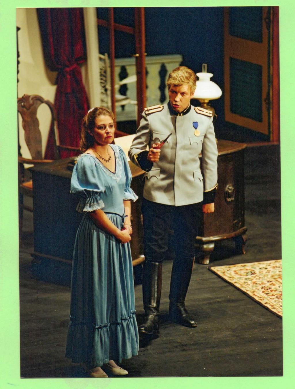 Als sie später ihre Mama informiert, will diese ihn natürlich sofort ausliefern. Doch die gefühlsmäßige Entrüstung weicht augenblicklich dem Verstand. Die “alte” Petkoff ist schlau genug zu wissen, dass dadurch das “schändliche Tun” ihrer Tochter aufgedeckt würde und so bleibt Bluntschli zunächst bei den Petkoffs. Er will die Damen, insbesondere Raina, nicht gefährden und so verdrückt er sich noch bevor der Tag anbricht.