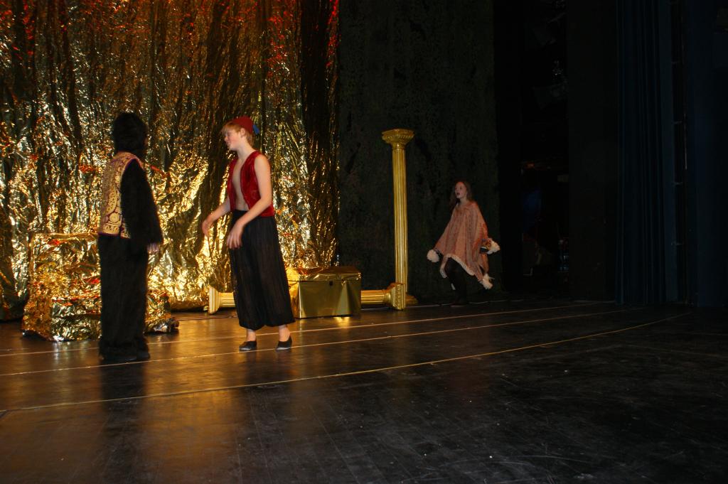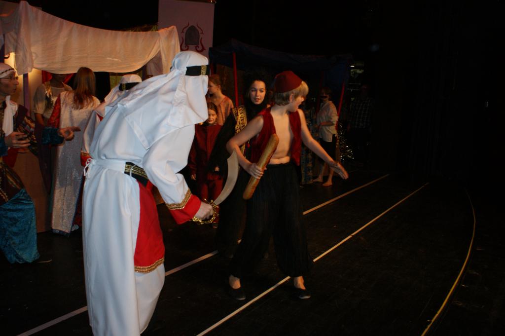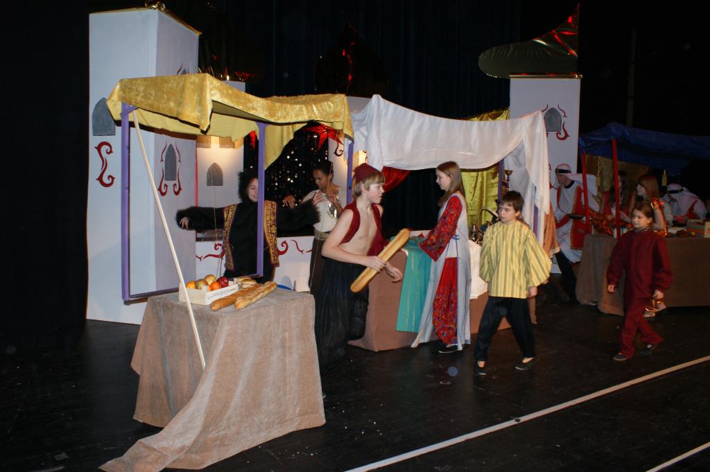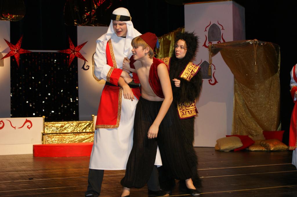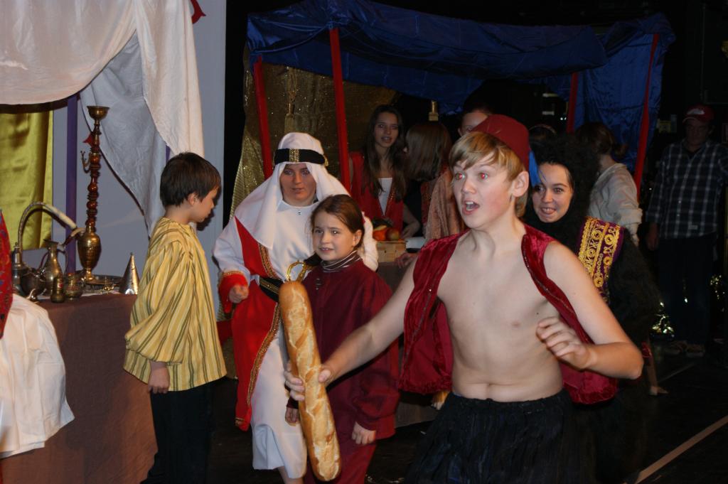 Aber da war auch noch Jasmin, die Tochter des Sultans. Sie sollte sich einen Prinzen zum Manne erwählen, so schrieb es das Gesetz vor. Jasmin aber traf auf dem Marktplatz von Agrabar Aladin, den armen, aber herzensguten Dieb...