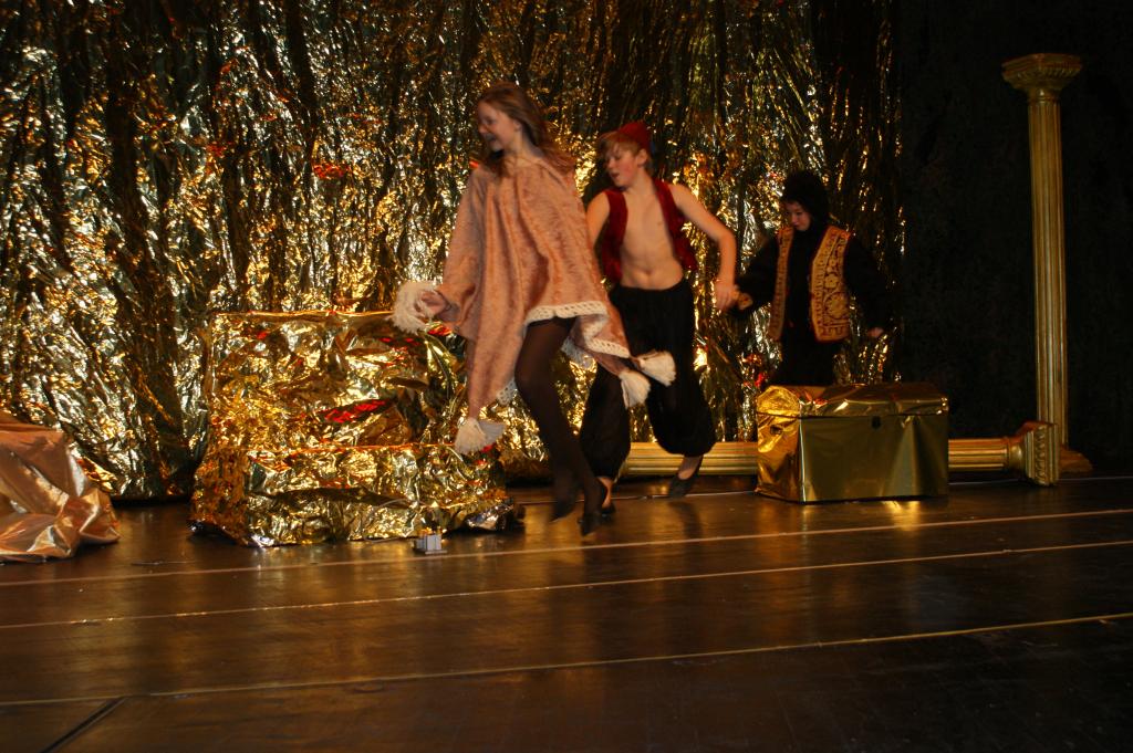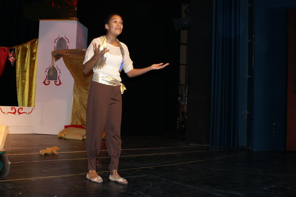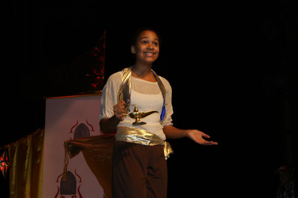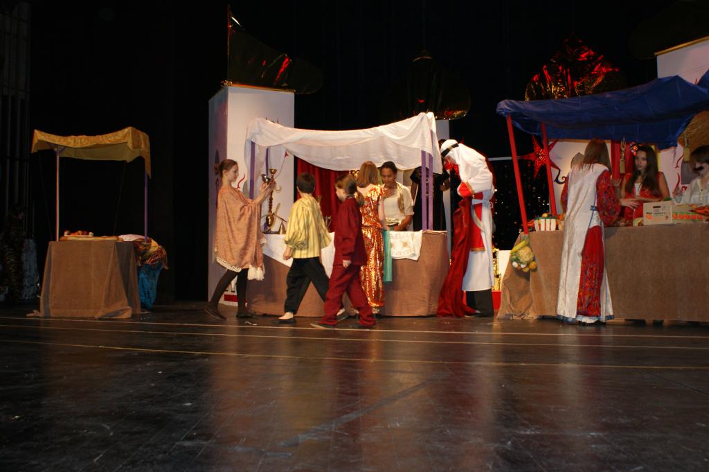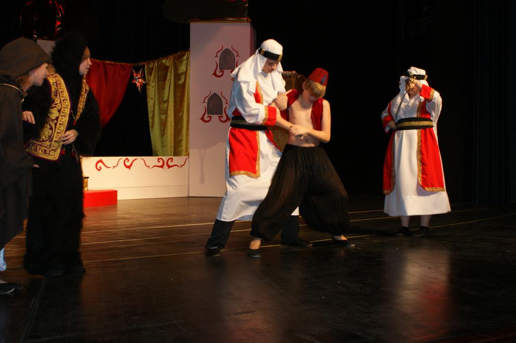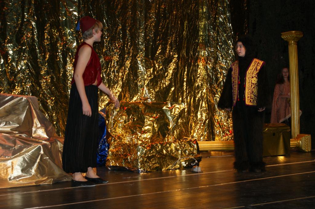Aber da war auch noch Jasmin, die Tochter des Sultans. Sie sollte sich einen Prinzen zum Manne erwählen, so schrieb es das Gesetz vor. Jasmin aber traf auf dem Marktplatz von Agrabar Aladin, den armen, aber herzensguten Dieb...