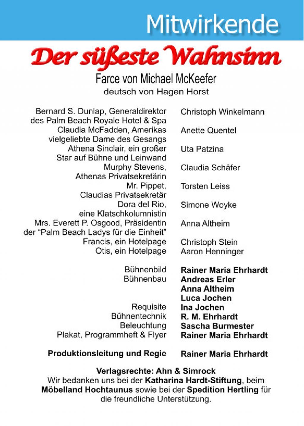 | Bühnenbau | Andreas Erler Anna Altheim Luca Jochen |