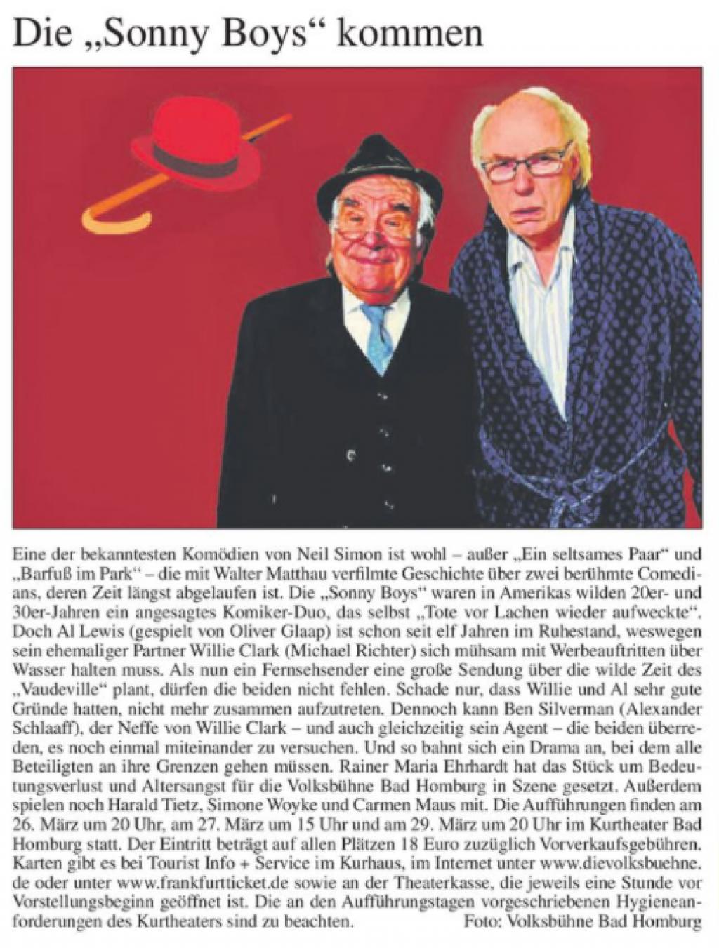 | Termine | 26.03.2022 - Kurtheater Bad Homburg 27.03.2022 - Kurtheater Bad Homburg 29.03.2022 - Kurtheater Bad Homburg |