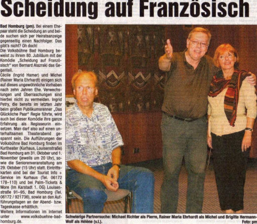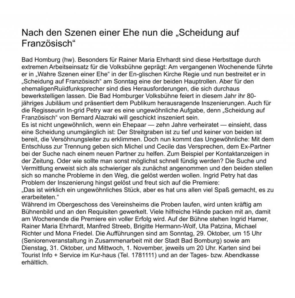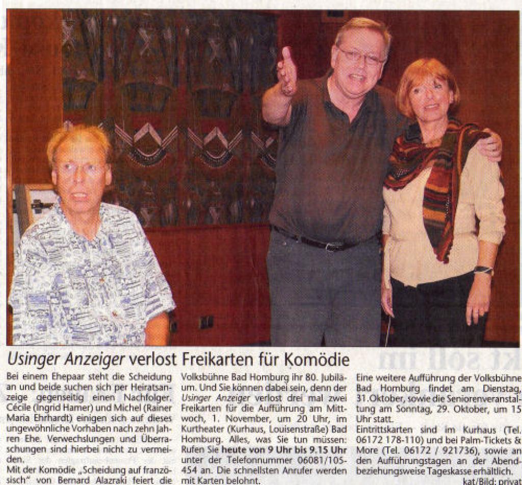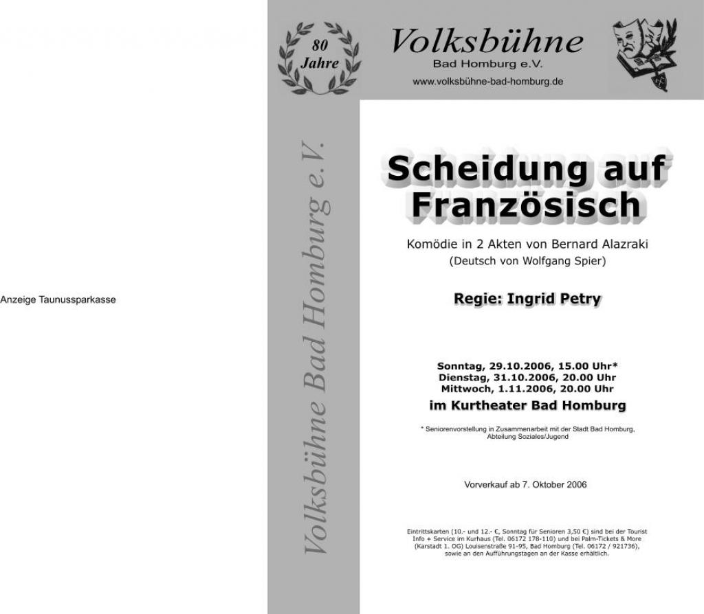 | Termine | 29.10.2006 - Kurtheater Bad Homburg 31.10.2006 - Kurtheater Bad Homburg 01.11.2006 - Kurtheater Bad Homburg |