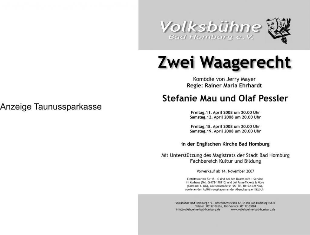 | Termine | 11.04.2008 - Englische Kirche Bad Homburg 12.04.2008 - Englische Kirche Bad Homburg 18.04.2008 - Englische Kirche Bad Homburg 19.04.2008 - Englische Kirche Bad Homburg |